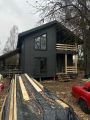 - В процессе возведения стен, установки кровли и окон.